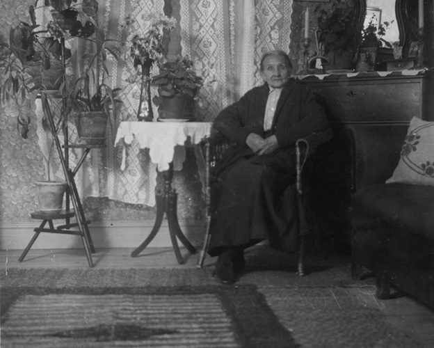 Hanna Olsson på 70-årsdagen - lärarinna i Stala socken, bl a på Valön, under slutet av 1800-talet.